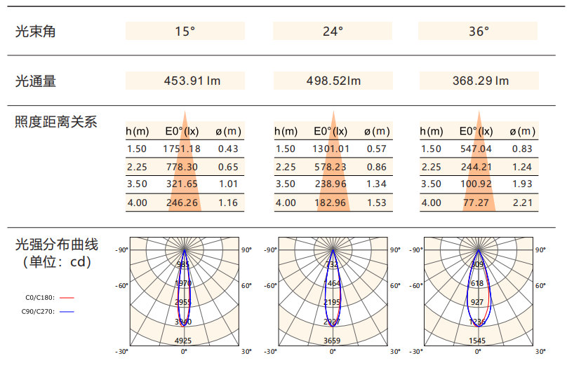 光束角:15°/24°/38°