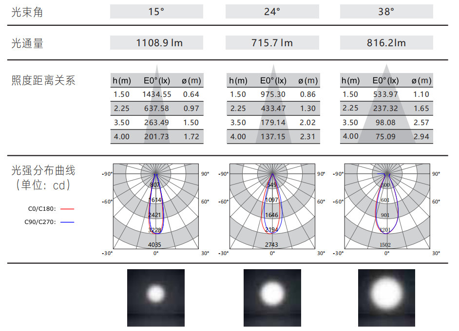 光束角:15°/24°/38°