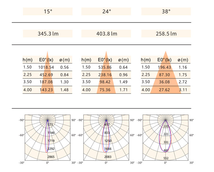 光 束 ⻆:15°/24°/38°