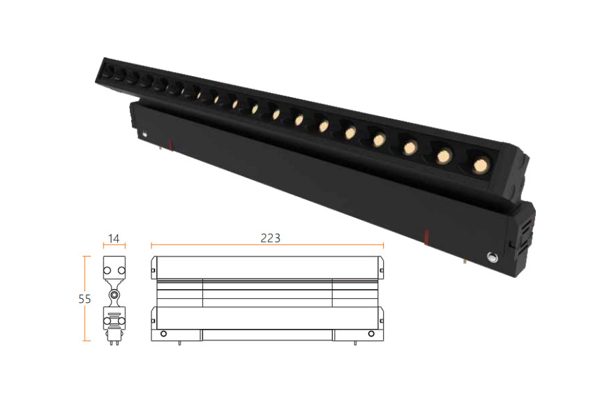 14型标准版磁吸组合照明180度可调格栅线性灯