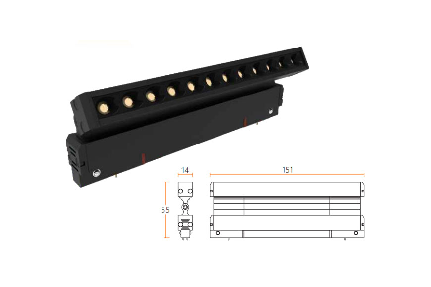 14型标准版磁吸组合照明180度可调平面发光线性灯